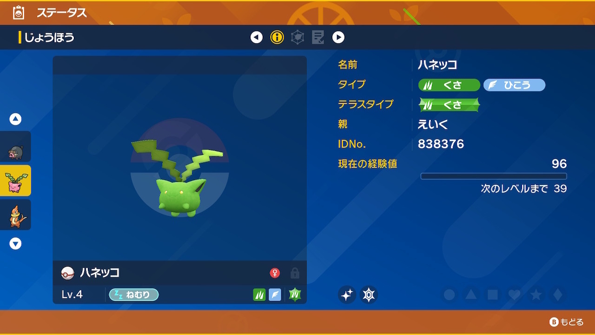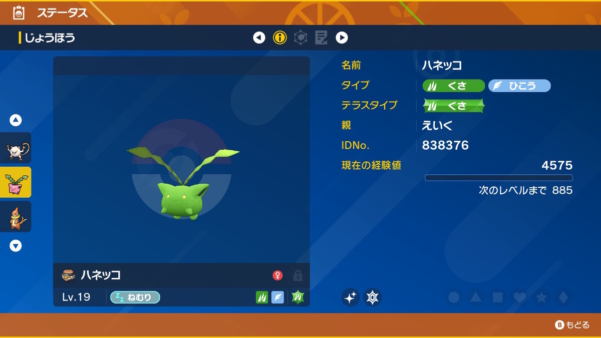 今回はハネッコ一族の色違いをゲットしました。